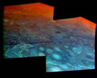 dell’atmosfera di Giove. Il Rosso corrisponde ad una immagine nel vicino