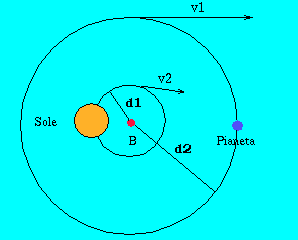 I due corpi formano un sistema che ha il baricentro in B (vedi figura a lato)